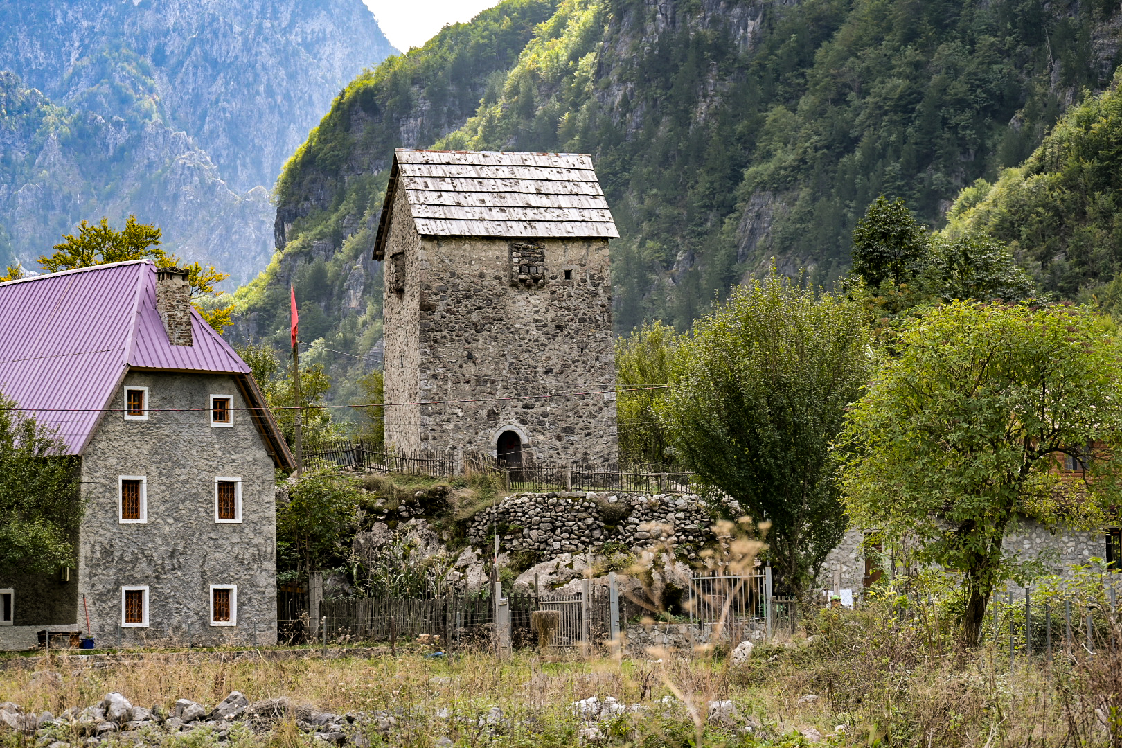 Oktober 07 – Wie in den Dolomiten! Nur dass die Täler im albanischen Nationalpark Theth (Parku Kombëtar Thethi) ein bisschen tiefer sind als beim italienischen Vorbild. Die Natur erscheint wilder. Die Bergwelt kommt einsamer daher – wenn man sich nicht auf den ausgetretenen Pfaden bewegt. Schon 1968 wurde das Areal im sozialistischen Albanien unter Schutz gestellt. Und wegen seiner Unzugänglichkeit blieb das Hochtal ziemlich lange unter dem Radar der Touristen, so dass es nicht überrannt wurde.