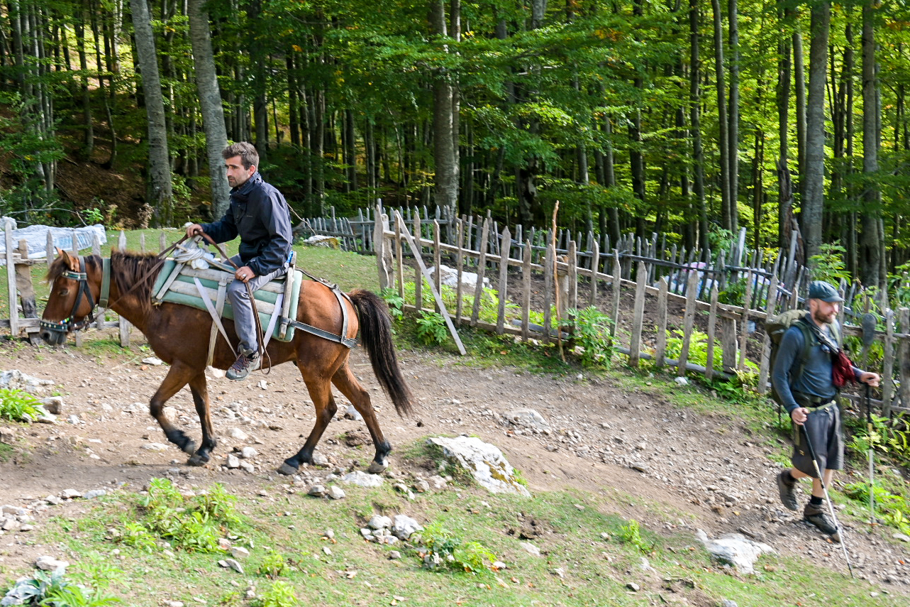 Auch auf den Trails zwischen Theth und dem benachbarten Valbona-Tal herrscht bis weit in den Herbst hinein Volkswandertag-Stimmung. Kaum verlässt man aber die wenigen populären Wege, springt einen die Einsamkeit der „Verdammten Berge“ – das ist die schlichte Übersetzung für das Prokletije-Gebirge – förmlich an.